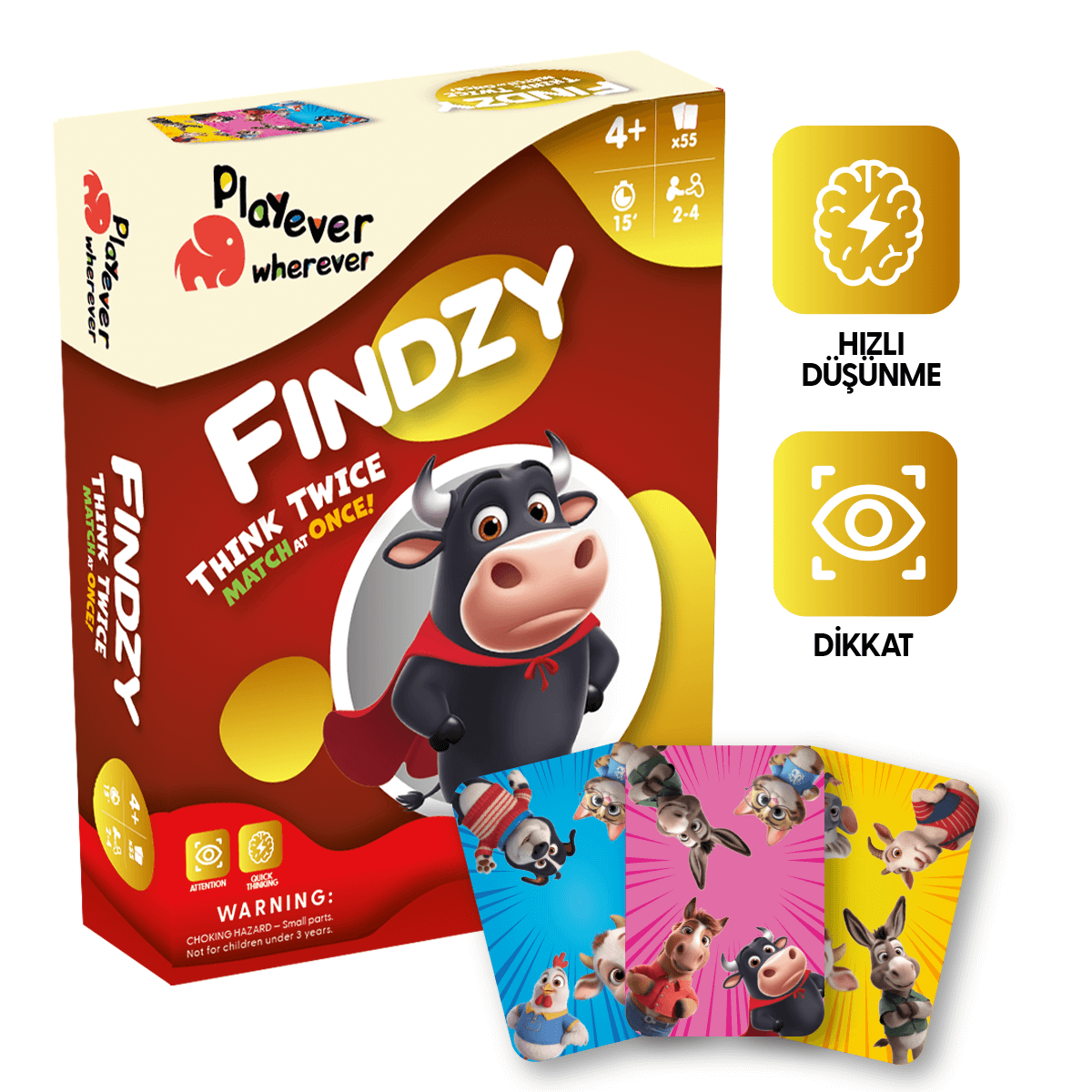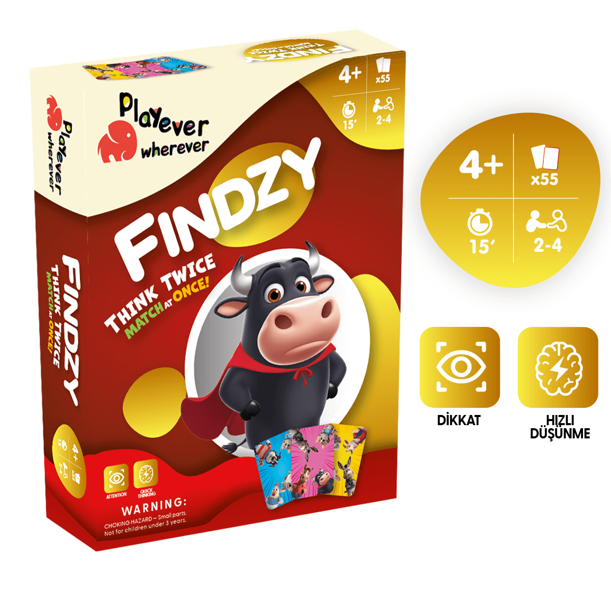 PLAYEVER ile Her Oyunda Gelişim Var! Oyun boyunca renkleri takip et. Ortak hayvanı bul, kartları topla! Çoooook sevilen Playever Findzy şimdi yeni DELUXE kutu tasarımıyla daha dayanıklı, daha özel!
