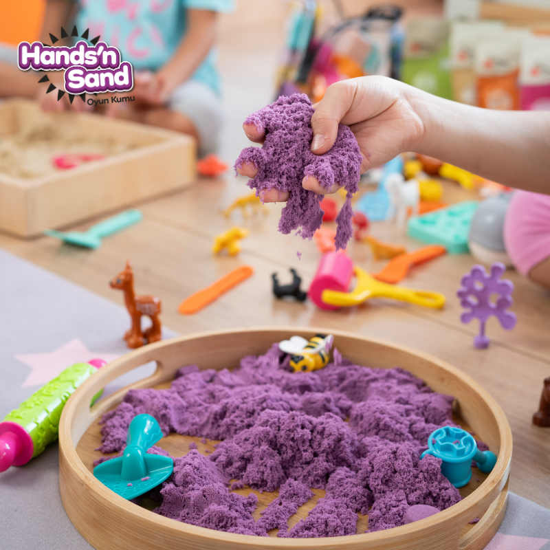 Keşfetmeyi seven eller için yumuşacık, güvenli oyun! Hands’n Sand Kinetik Oyun Kumu, çocukların hem eğlenmesini hem de gelişimini destekleyen doğal ve güvenli bir oyun materyalidir. Katı gibi şekil alır, sıvı gibi akar… Kolay şekil alır, yapışmaz, kokmaz. Kilitli ambalajı sayesinde muhafazası pratiktir. Böylece tekrar tekrar kullanılabilir.Çocuk sağlığına zararlı toksik madde, silikon yağı, boraks ve gluten içermez. Elleri boyamaz. Yapışkan his bırakmaz. Koku yapmaz. Etrafa bulaşmaz. Kurumaz. Oda sıcaklığında ve kapalı ambalajında uzun süre saklanabilir. Duyusal Gelişim : Hands’n Sand duyusal oyun kumu, çocukların dokunsal duyularını geliştirmesine ve ince motor becerilerini güçlendirmesine yardımcı olur. Montessori yaklaşımına uygun olarak çocukların serbest keşif yapmasına imkan verir. Sakinleştirici ve Rahatlatıcı Etki : Hands’n Sand kinetik kum çocukların oyun sırasında odaklanarak fazla enerjisini sağlıklı şekilde yönlendirmesine ve duygu dengesini bulmasına yardımcı olur. Yumuşak dokusu ve akışkan yapısı sayesinde stres azaltıcı etki yaratır. Evde Etkinlik ve Yaratıcı Oyun İmkânı : Hands’n Sand renkli oyun kumları, evde yapılacak eğlenceli, eğitici etkinlikler için harika bir alternatiftir. Çocuklar hayal güçlerini kullanarak kumdan kaleler, türlü türlü şekiller, figürler yapabilir. Önerile Yaş : 3+