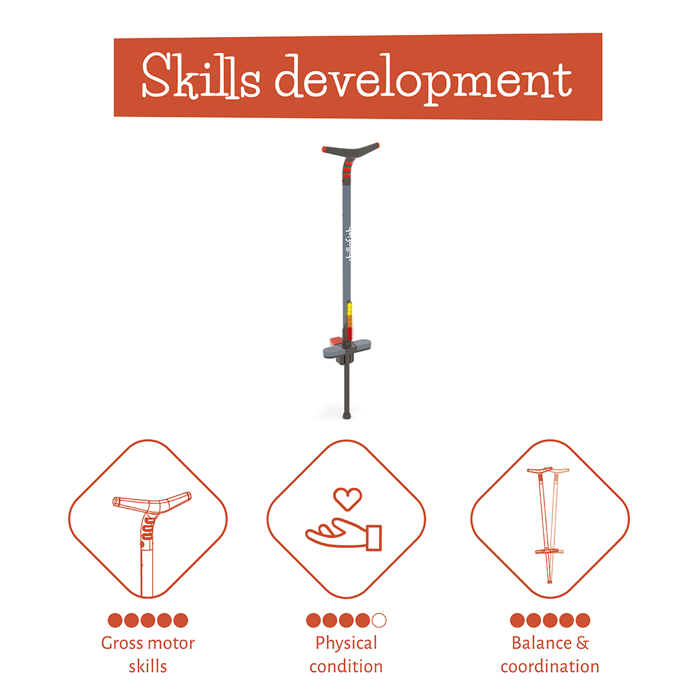 Chillafish Poogi, eğlenceli ekstra zorlu hareketlere imkan verecek şekilde tasarlanmış bir pogo çubuğudur, üstelik şimdi ışıklı...Ne kadar yükseğe sıçrarsan, ışıklar o kadar fazla parlayacak! Tek elle pogo yapabilir misin? Ya da tek ayakla? Bu eğlenceli pogo çubuğu, tek elle veya tek ayakla denemek için merkezde ekstra bir ayak pedalına ve ergonomik bir tutuş yerine sahiptir. Ekstra eğlence için kendinize meydan okuyun! İki ayaktan tek ayağa geçerek denge alıştırması yapın! Ve sonra adım adım bir elinizi de bırakmayı deneyin. Çok yönlü yumuşak dokunuşlu tutuş yeri bir veya iki el için tasarlanmıştır. Pogo çubuğu, borunun içinde sizi sonsuza kadar ayakta tutacak yorulmak bilmeyen güçlü bir yay ile tasarlanmıştır. Kaba motor becerilerinin gelişimi ve fiziksel zindelik için harikadır. Arkadaşlarınıza meydan okuyun ve yapabildiğiniz kadar yükseğe zıplayın! Ambalajında tamamen monte edilmiş olarak zıplamaya hazır halde gelir! Önerilen yaş: 9+ yaş Maksimum ağırlık: 70 kg
