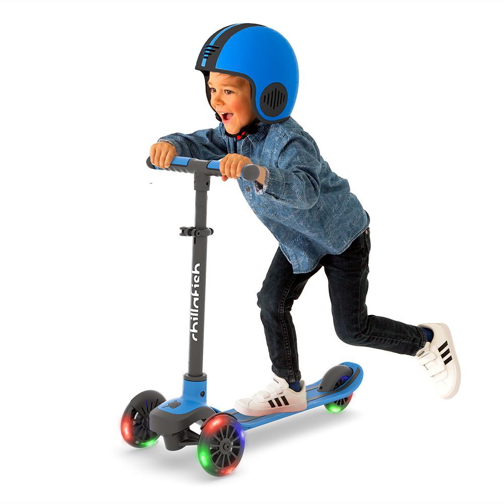 Scotti, klasik 3 tekerlekli scooter'ın Chillafish yorumudur! Şimdi pil gerektirmeyen led ışıklı tekerlekleriyle çok daha havalı. 3 yaş ve üzeri çocuklar için tasarlanmış bu hafif (2,4 kg), 3 tekerlekli scooter sağa sola eğerek yönledirilir. Bu şık scooter Twintip ayak tablası ve entegre ayak freni ile Chillafish imzası taşıyor. Yükseklik ayarlı direksiyon kolay taşınabilmesi için çıkarılabilir olarak tasarlanmıştır, süper rahat el tutacakları da konforlu bir sürüş deneyimi sunar. 3 yaş ve 80 cm üzeri, 50 kg altı çocuklar için uygundur. Çocukların motor, denge, koordinasyon ve sürüş becerilerini geliştirir.