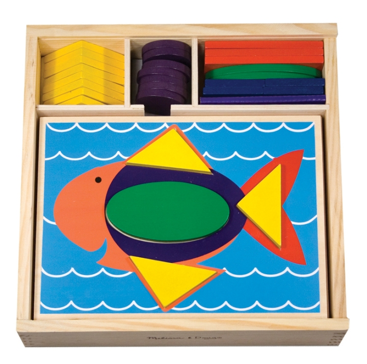 5 adet çift taraflı yapboz tablası üzerine yerleştirilen 30 adet şekilden oluşur. Canlı renklerden oluşan şekiller parçalar ile doldurulduğunda resim ortaya çıkar. Çocukların ince motor becerilerini, el göz koordinasyonunu ve renk, şekil, boyut farklılıklarını algılama becerilerini geliştirir. Bu üründe toksik olmayan boyalar kullanılmıştır, gerekli Avrupa Birliği ve ABD oyuncak güvenlik standartlarına uygundur.