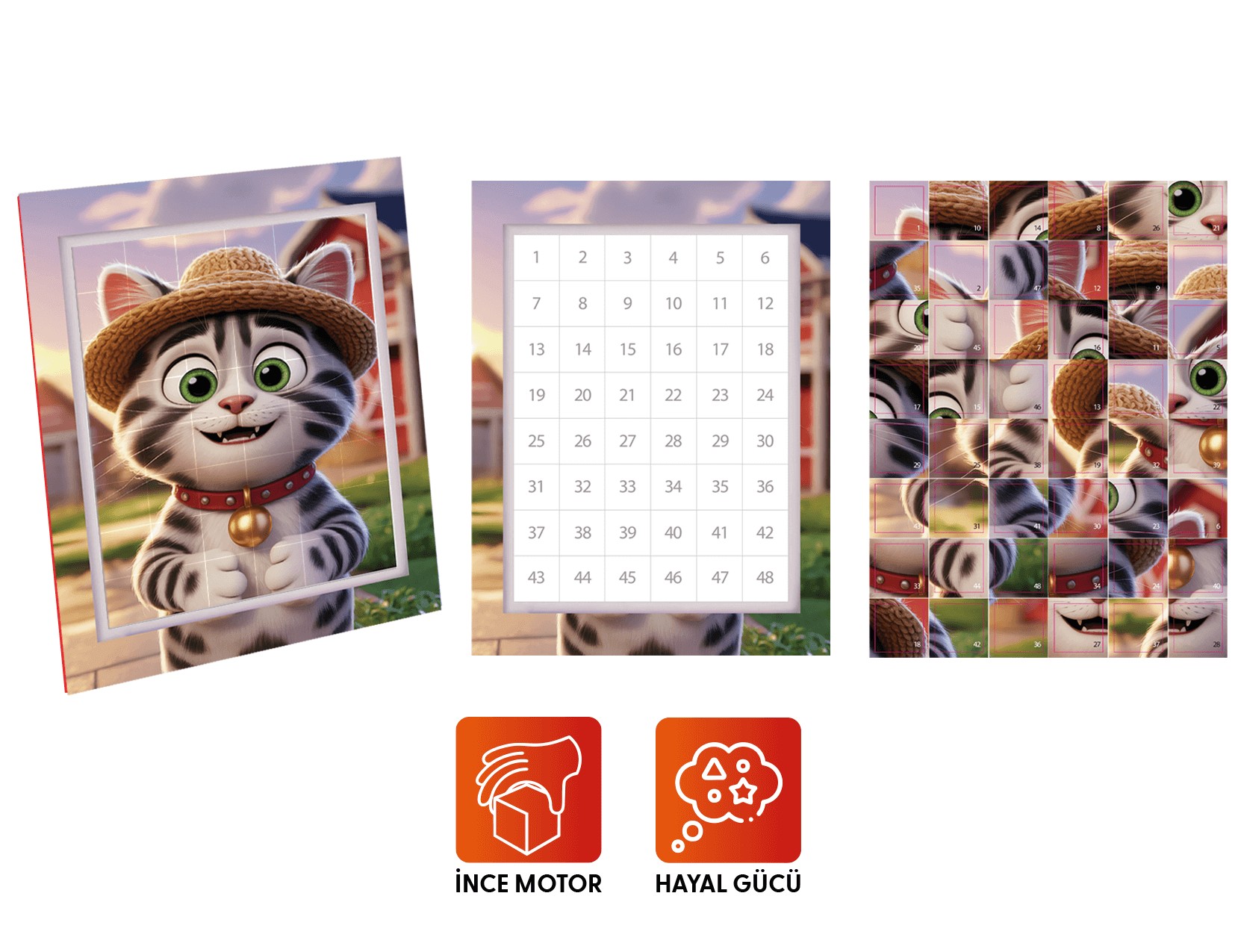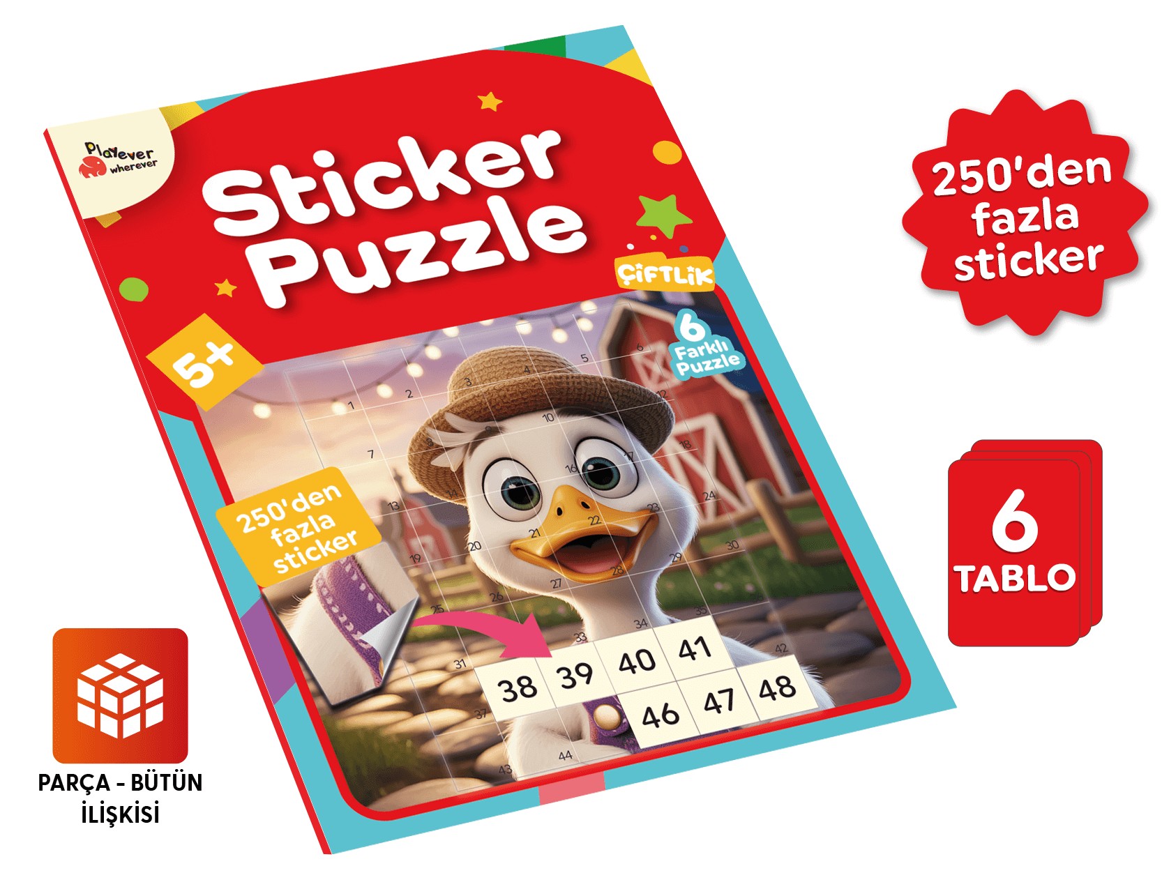 Eğlence ve gelişim tek kitapta buluştu: Playever Sticker Puzzle Kitap. Playever Sticker Puzzle, hem sticker hem puzzle keyfini bir araya getiren eğlenceli ve yeni nesil bir etkinlik kitabıdır! Her kitapta 6 sevimli karakter ve 250’den fazla sticker bulunur. Çocuklar sayıları takip ederek kare sticker parçalarını yapıştırır ve 48 parçalı yapbozları tamamlar. Bu özel sticker puzzle kitap sayesinde 5 yaş ve üzeri çocuklar; sayı ve sıra takibini pekiştirir, parça-bütün ilişkisini keşfeder, ince motor becerilerini geliştirir, dikkat ve odaklanma süresini artırır, hayal gücü ve görsel algılarını güçlendirir. Kolay anlaşılır yapısıyla çocuklar tek başına da rahatlıkla uygulayabilir. Evde, tatilde veya seyahatte keyifle yapılabilecek harika bir etkinliktir. Önerilen Yaş: 5+