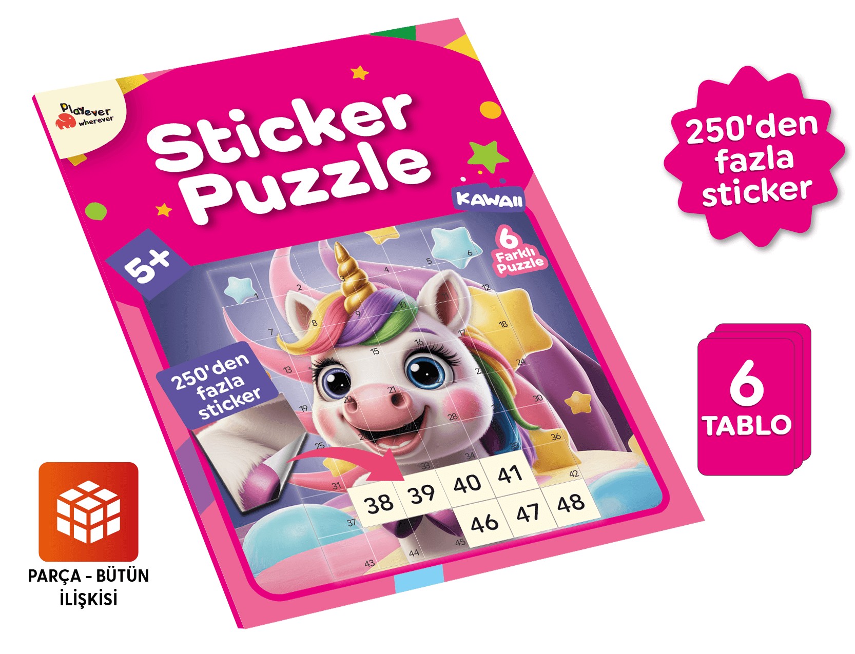 Eğlence ve gelişim tek kitapta buluştu: Playever Sticker Puzzle Kitap. Playever Sticker Puzzle, hem sticker hem puzzle keyfini bir araya getiren eğlenceli ve yeni nesil bir etkinlik kitabıdır! Her kitapta 6 sevimli karakter ve 250’den fazla sticker bulunur. Çocuklar sayıları takip ederek kare sticker parçalarını yapıştırır ve 48 parçalı yapbozları tamamlar. Bu özel sticker puzzle kitap sayesinde 5 yaş ve üzeri çocuklar; sayı ve sıra takibini pekiştirir, parça-bütün ilişkisini keşfeder, ince motor becerilerini geliştirir, dikkat ve odaklanma süresini artırır, hayal gücü ve görsel algılarını güçlendirir. Kolay anlaşılır yapısıyla çocuklar tek başına da rahatlıkla uygulayabilir. Evde, tatilde veya seyahatte keyifle yapılabilecek harika bir etkinliktir. Önerilen Yaş: 5+